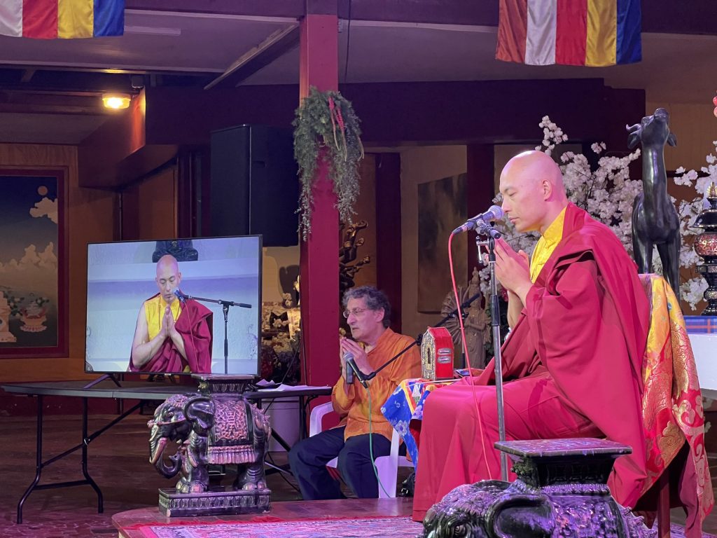 So, whatever that you are visualizing, སྣང་ལ་རང་བཞིན་མེད་པ། Nang La rangshin mepa whatever that you are visualizing, that the very nature of that visualization in itself is emptiness. But in the relative level, you are visualizing. You understand that? Right? So you’re carrying on with that mindset all right? So you’re not trying to squeeze your mind and saying “I! Need to! Visualize! This!” You know? Not like a stone, you know?
