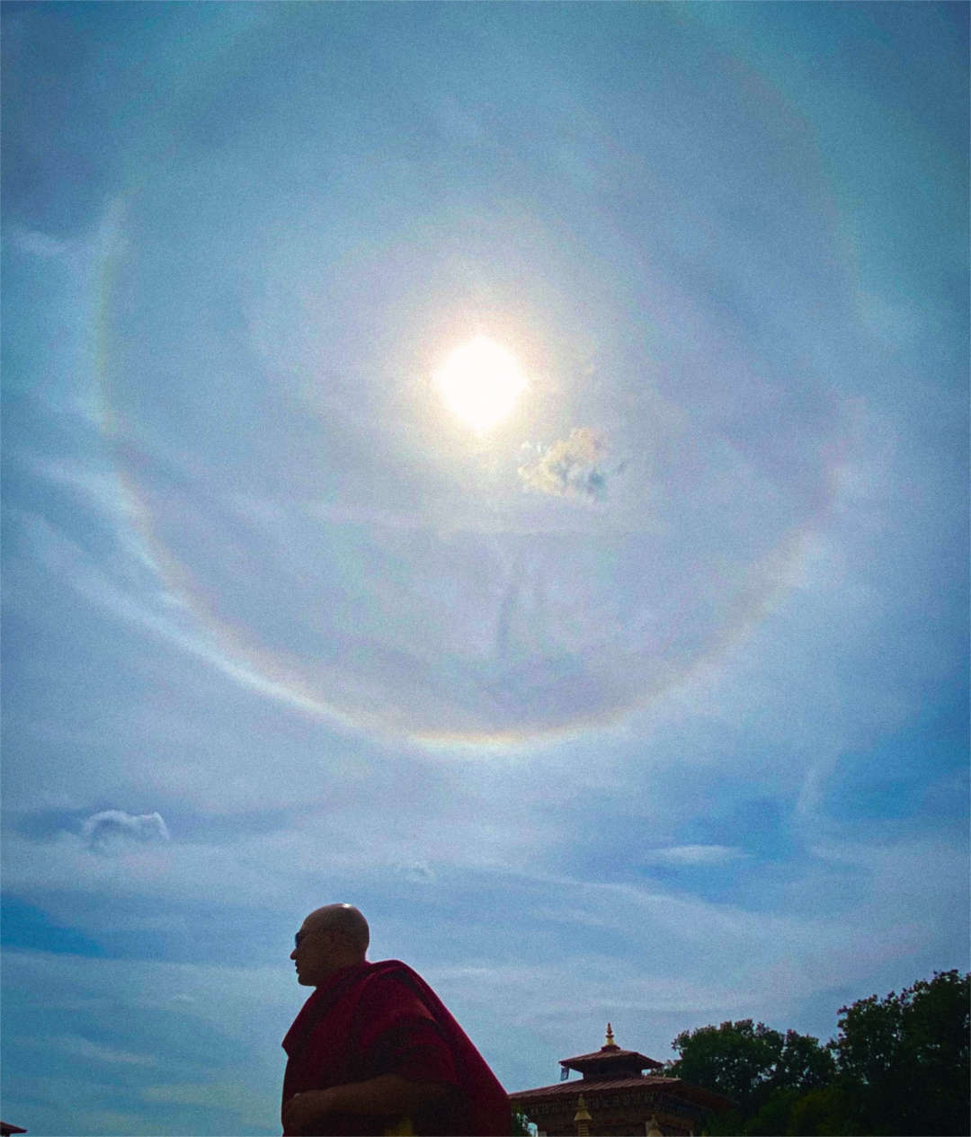 And then at that time I said to Six-Armed Mahakala, I said “Don’t you think it would be nice if there is a rainbow around the sun, so that people out there can see that you are not just a random deity, like boring, nonsense Vajrayana. They can feel that you are here, that you exist in this realm, that your blessing exists, your connection exists, just a little bit of that, little bit around the sun, rainbow would be nice. But who am I, you know the best.”